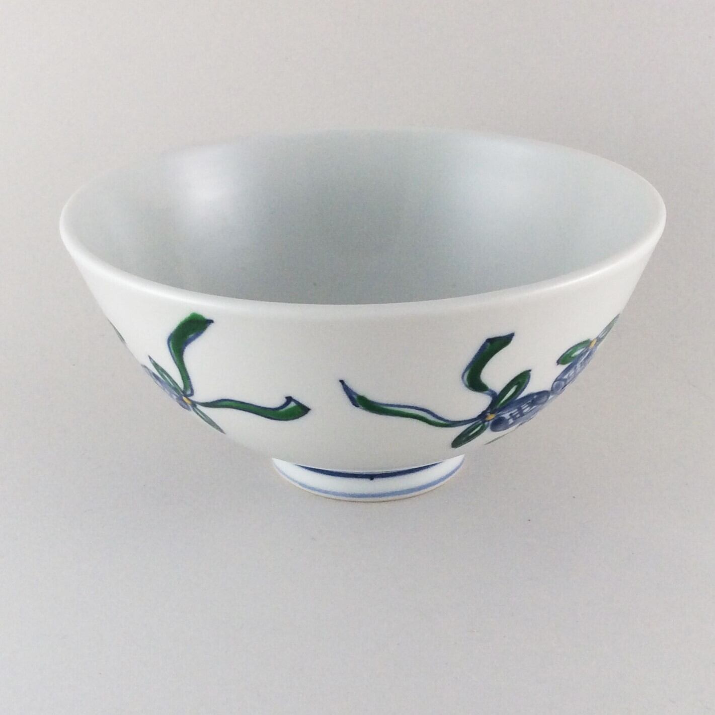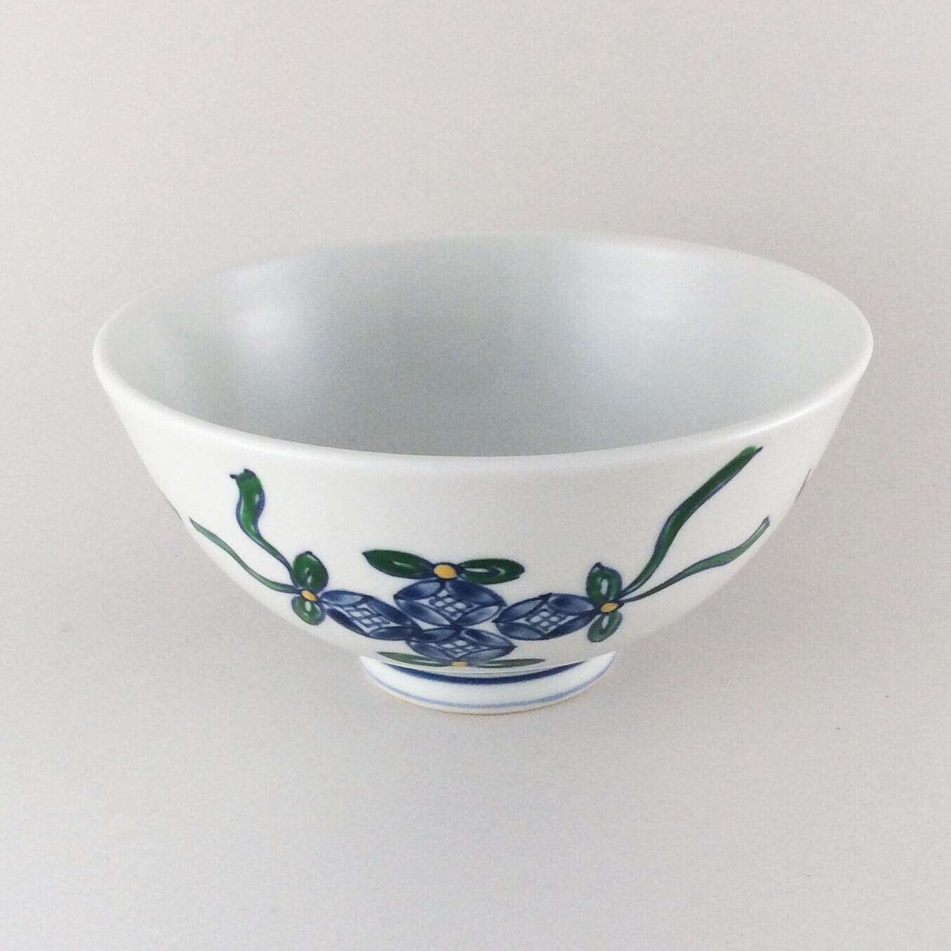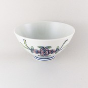 縁起の良い吉祥紋様のひとつ、「七宝」を描いたお茶碗です。