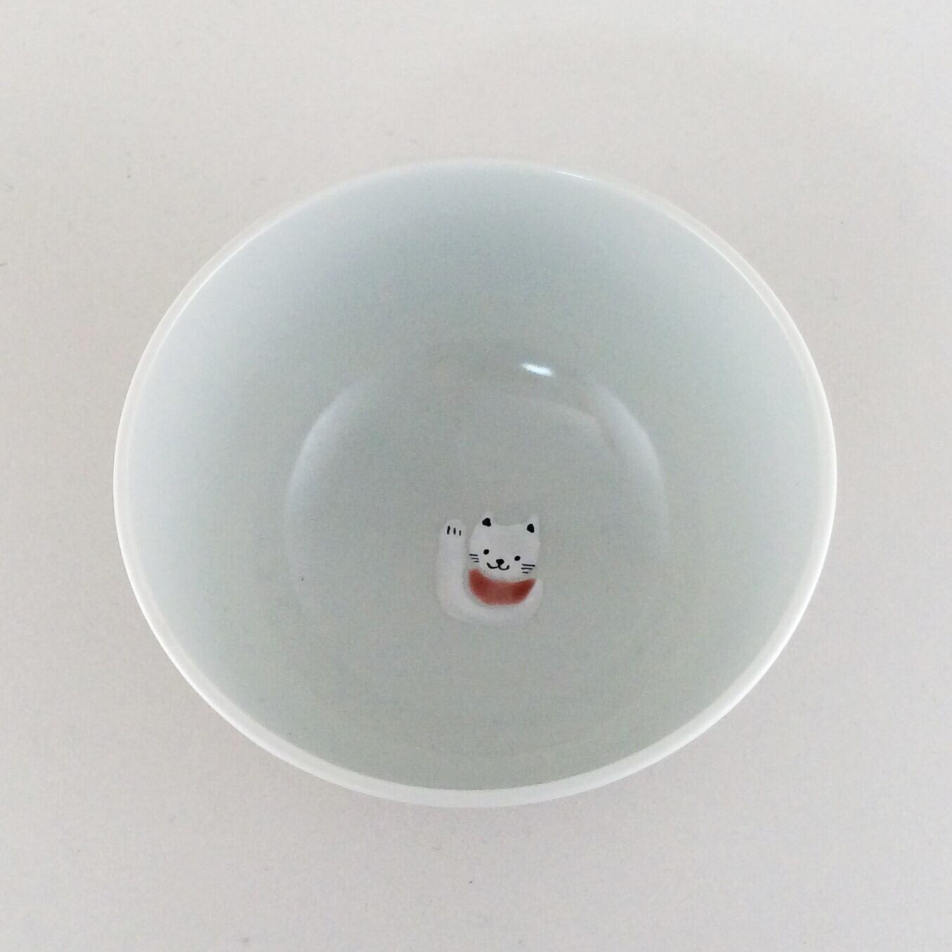 招き猫と小花が器」のまわりを囲むシンプルなお茶碗です。