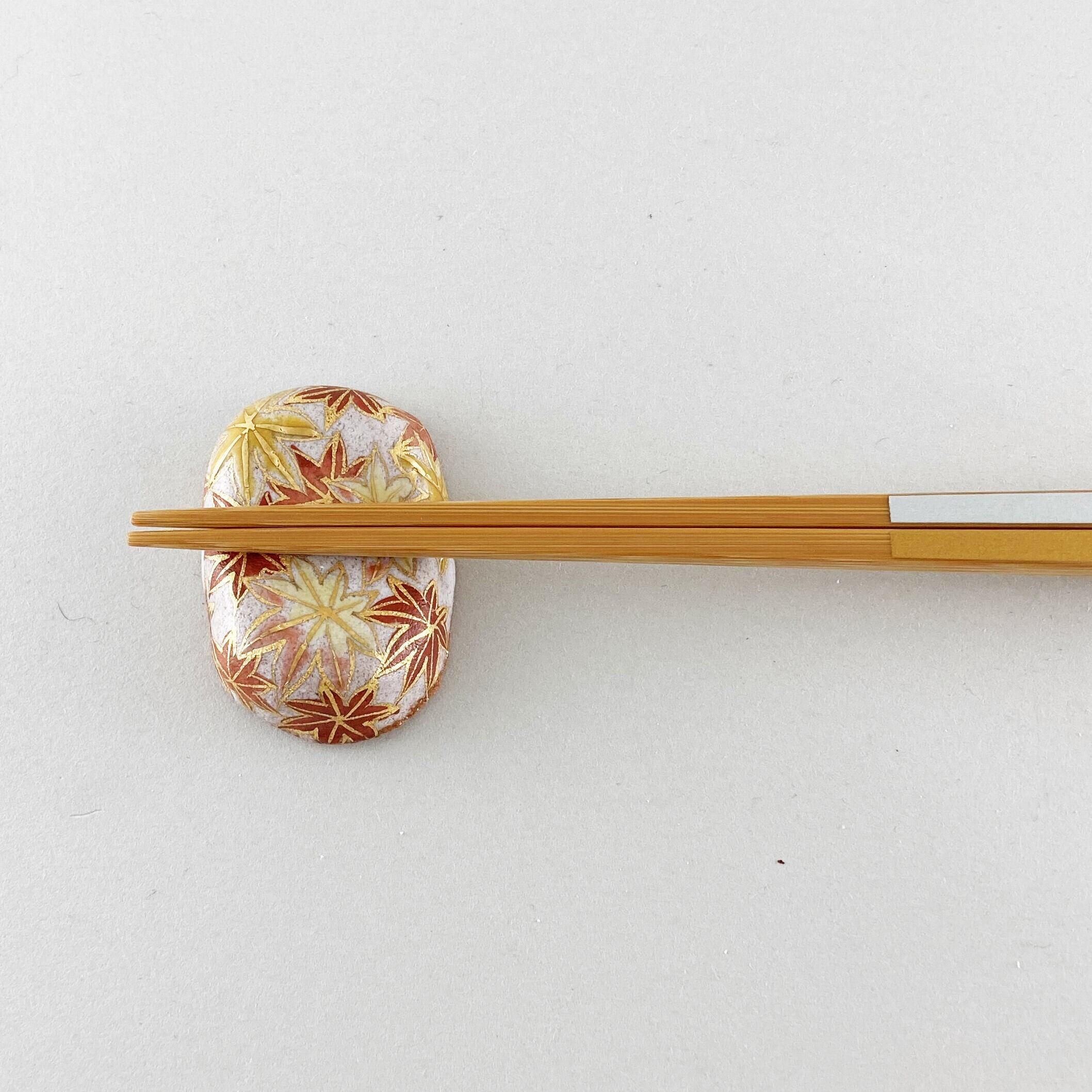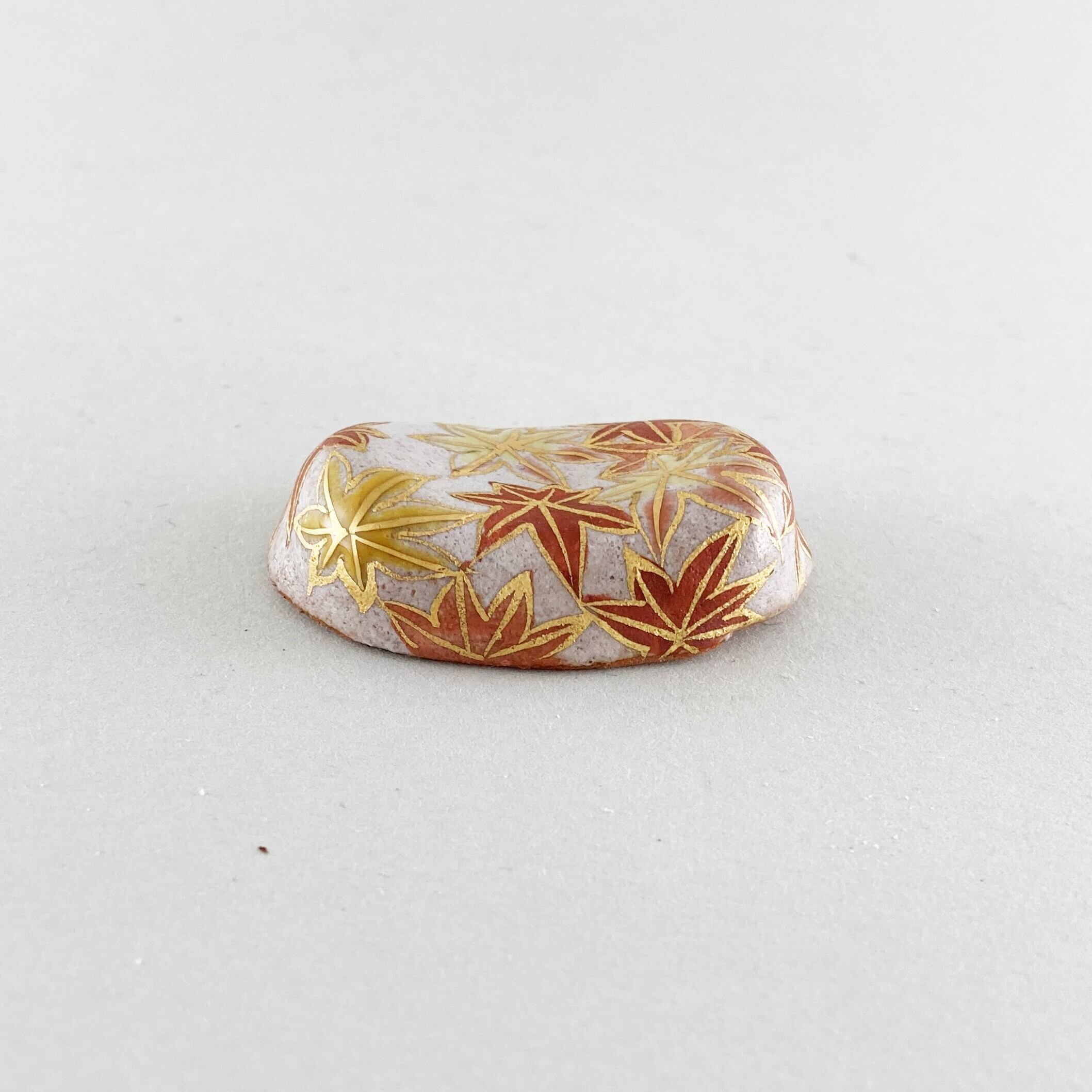 シンプルな楕円の形に金で装飾した紅葉の箸置きです。