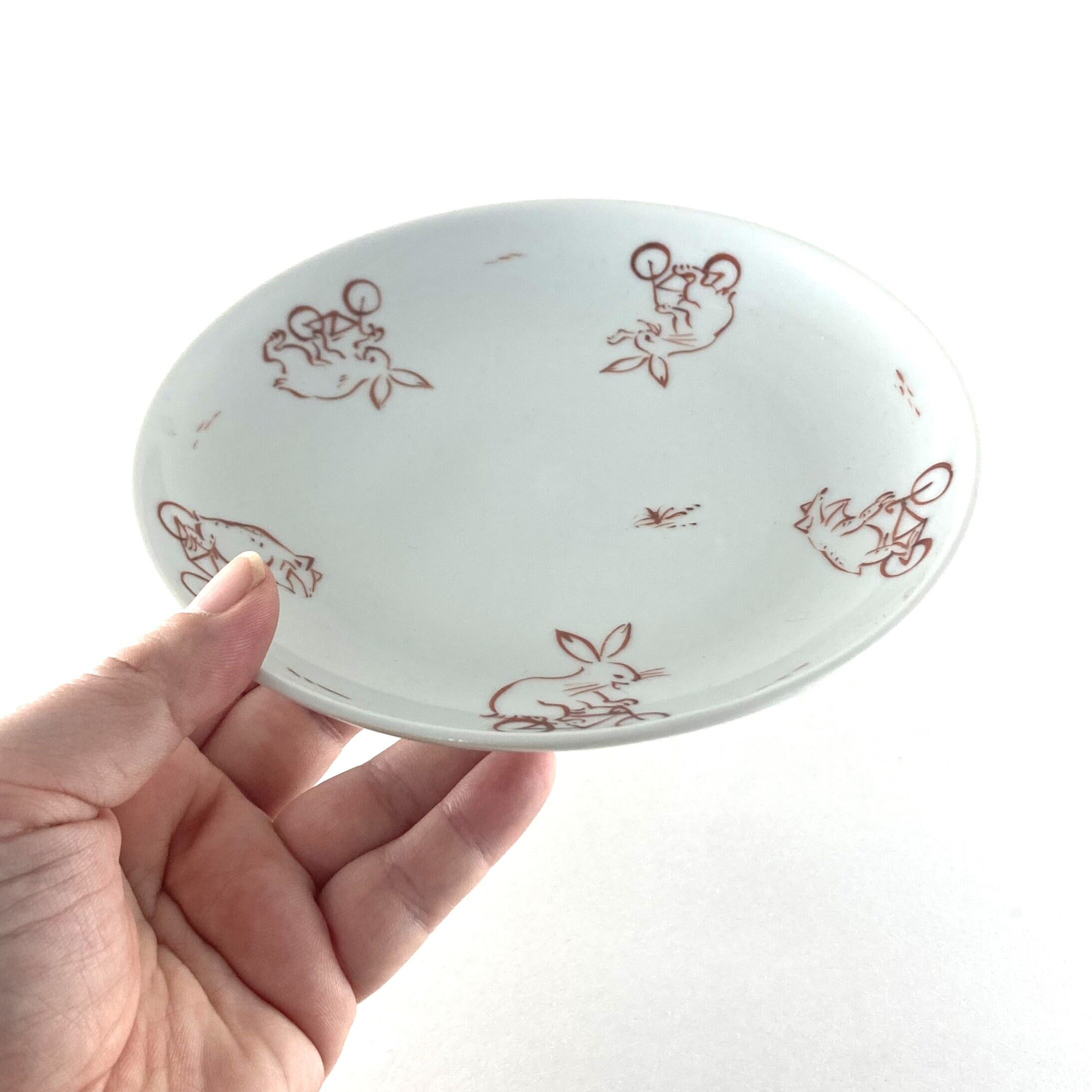 「サイクリング」はうさぎとカエルが自転車に乗って器の周りを楽しく走っています。